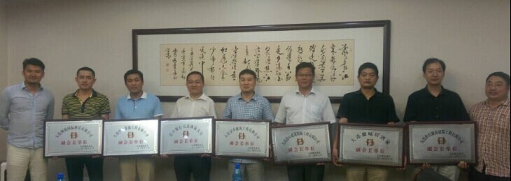 在正式开始会议之前,轮值会长满进军代表商会会长胡国庆给参会的副会长企业颁发了牌匾。副会长们拿着自己的牌匾在会议室合影,每个人的脸上都洋溢着兴奋的笑容。