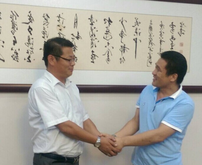 八月份轮值会长满进军与九月份轮值会长隋世武进行工作交接