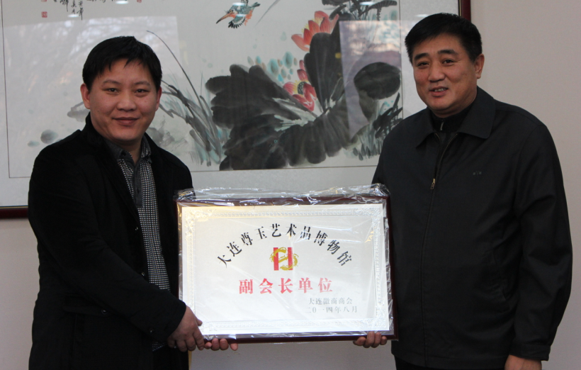 会议第十项 由胡会长颁发副会长企业牌匾。监事长郭桂海拿着自己企业牌匾感受到莫大的荣誉并与会长一同合影。