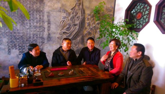 初春的三月虽有些寒意,我们带着喜悦的心情,来到了大连开发区,商会李结龙理事单位——大连松上装饰工程有限公司走访。在轮值会长孙虎龙的带领下,开始了新年的第一项工作:走访会员企业。今年大连徽商商会工作重点在服务会员企业、听取各行业会员企业的心声。新年的第一次总结会上,胡国庆会长和商会的轮值会长等领导班子的共同想法。新年新思路,新发展,如何让商会健康、和谐的发展?如何带领会员企业渡过难关?如何在会员企业最困难的时候助一臂之力?如何以商养会?造血功能切入点在哪?广大会员的需要是什么?带着种种问题,带着壮大徽商企业的决心,商会开始了第二次走访。 今天走访了理事李结龙的企业,大连松上装饰工程有限公司及亦为他开办的“徽州茶社”,理事吴长举等在开发区银行界的老乡参加了交流座谈。