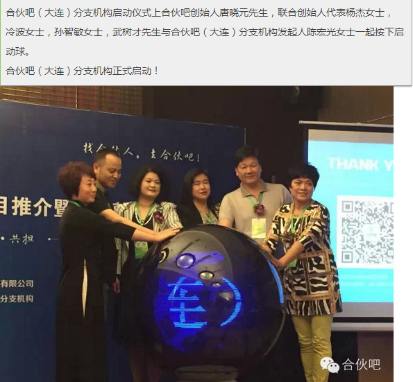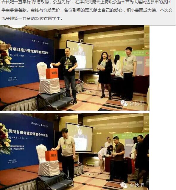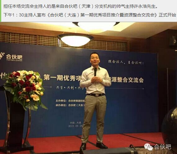 2015年5月24日 合伙吧(大连)第一期优秀项目推介暨资源整合交流会在大连凯宾斯基饭店隆重召开。