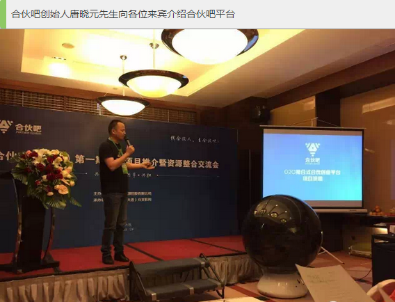 最后合伙吧创始人唐晓元先生向参会人员介绍了资源整合的流程及合伙吧平台将通过提供一整套完整的服务为企业家实现资源整合。