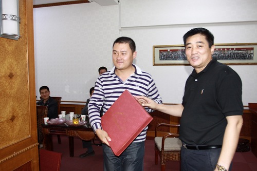 常务副会长胡国庆给商会副会长曹俊颁发先进个人奖