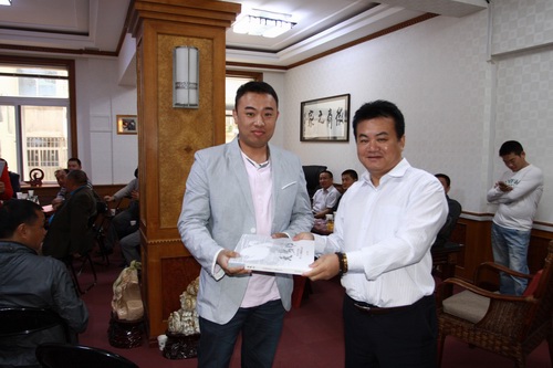 2.王平顺会长给德高望重的顾问们颁奖(贝雕画一幅)