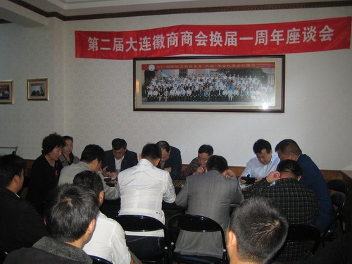 2011Äê10ÔÂ17ÈÕ£¬ÊÇ´óÁ¬»ÕÉÌÉÌ»áµÚ¶þ½ìÁìµ¼°à×Ó³ÉÁ¢Ò»ÖÜÄêµÄÈÕ×Ó¡£µ±ÌìÏÂÎçÔÚ´óÁ¬»ÕÉÌ»á¹Ý¾Ù°ìÁË¡°µÚ¶þ½ì´óÁ¬»ÕÉÌÉ̻ỻ½ìÒ»ÖÜÄê×ù̸»á¡±¡£Íõƽ˳»á³¤¡¢Àϻ᳤Íõ´ó±þ¡¢¶ÅÐĹó³£Îñ¸±»á³¤¡¢ÎâÎ°ÃØÊ鳤µÈÉÌ»áÀíÊÂ29È˲μÓÁË´Ë´Î×ù̸»á¡£