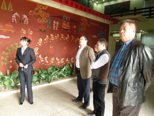 考察团听讲解员在讲述红军二万五千里长征的感人故事