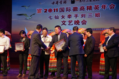 2011国际徽商精英年会于2012年12月2-4日在广西南宁举行。本次会议的主题为“徽商走进北部湾”。 大连徽商商会一行七人在王平顺会长的率领下参加了此次大会。大连徽商商会在全国56个徽商商会中被评为“2011年度先进商会”。安徽国际徽商交流协会周富如副会长宣读中华百名优秀徽商名单。大连鑫宏利船舶工程有限公司董事长王平顺、大连宏旗计算机网络技术有限公司董事长杜心贵被评为百名优秀徽商。