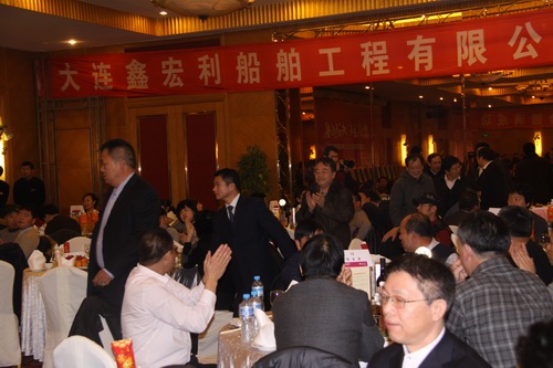 有请两位企业家上台:站在我身边的是大连鑫宏利船舶工程有限公司王平顺董事长。