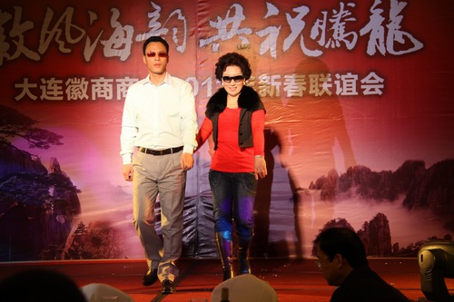 朋友们、亲爱的老乡们,每年商会的新春联谊会都有个保留节目,那就是《时装模特秀》,下面请欣赏商会秘书长组合给大家带来的精彩表演,请大家的掌声随音乐响起来!