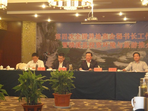 四月初的安徽绩溪群山叠翠,山清水秀,溪水潺潺,全国76家安徽商会秘书长汇聚徽商发源地之一——绩溪。18万人口的小县,历史和当今产生了兵部尚书、户部尚书、徽黑大师、红顶商人、国家主席等一批旷世英才,人文荟萃。为期3天的全国异地安徽商会秘书长工作会议,在徽商故里、徽文化、徽菜发源地、胡锦涛主席的家乡皖南绩溪举行。