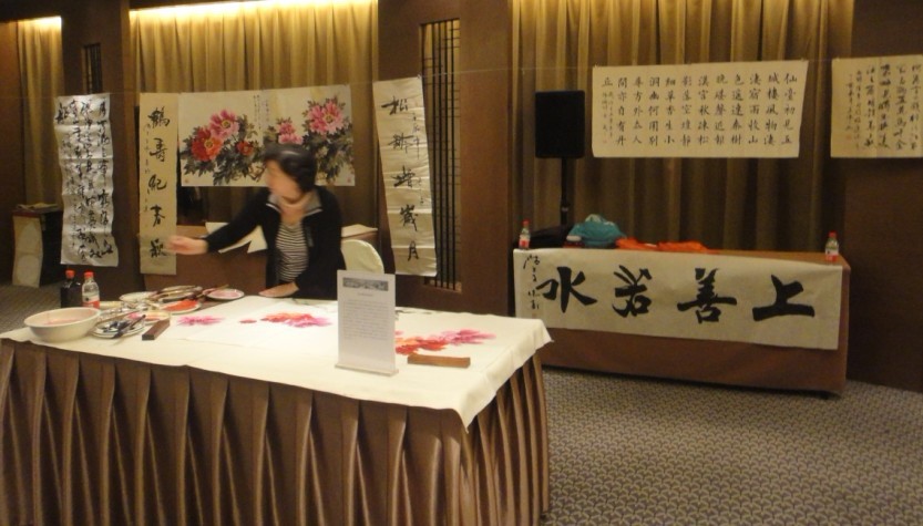 老师现场挥毫泼墨为到场嘉宾展现中华艺术