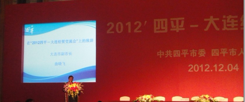 交流会上,大连市副市长曲晓飞发表了热情洋溢的讲话,并代表市委、市政府向莅临洽谈会和签约仪式的各位领导、嘉宾表示热烈欢迎,向长期关心、支持大连经济社会发展的朋友表示衷心感谢。四平市市长石国祥向参会的客商、嘉宾介绍了四平市市的区位优势、投资环境、经济社会发展情况及未来发展规划。党的十八大闭幕不久,哈大高铁刚刚正式投入运营,四平市领导就来大连参观考察,这是一次学习之旅、交流之旅、友谊之旅。两市可以大学习各市率先全面振兴的好经验。近年来,大连经济社会快速发展,产业结构层次高,改革开放步伐快,干部精神状态好。大连的高新技术产业、战略性新兴产业、现代服务业的发展领先东北,是东北对外开放的龙头和窗口,尤其难能可贵的是,在工业持续快速健康发展的同时,城市环境又有新的改善。同为东北城市,我们为大连感到骄傲和自豪。随着“高铁时代”的到来,四平与大连进入3小时经济圈,四平将主动接受大连的带动和辐射,借船出海、借梯登高,在产业承接、招商引资、港口物流、农产品供应及旅游业等服务产业发展方面加强合作,实现优势互补、共同发展。