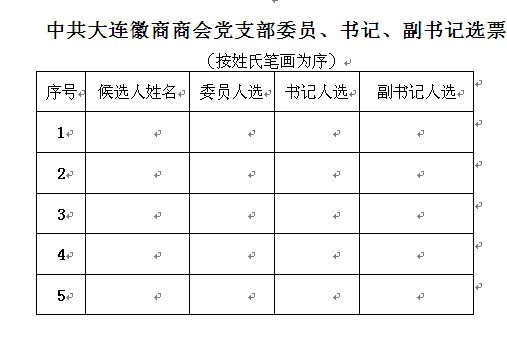 根据大连徽商商会党员人数的实际情况,现核实大连徽商商会会员120人中党员人数为34人,根据经合办机关党委的要求,以无记名投票方式选举产生支部委员、支部书记、副书记(正式党员3—6名,直接选举产生支部书记、副书记;正式党员7—10名,可选举产生3名党支部委员并从3人中选举支部书记、副书记;正式党员人数11名以上,可选举产生5名党支部委员并从5人中选举支部书记、副书记)。