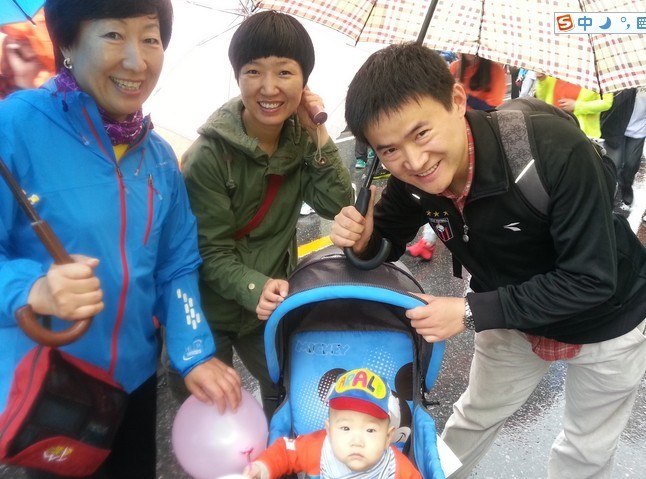 滨海路上,一把把小伞拼成了一顶大伞,将雨水都遮挡在徒步路之外了。会员们用雨伞连接出一条有爱的徒步路。在庞大的队伍中,一位年轻的父亲格外引人注目,他推着一辆婴儿车,父亲不时地检查四周是否遮挡严实,这就此次徒步大会最小的参加者,我们徽二代——江宝儿,一个只有7个月大的小帅哥,没有因为下雨而停止前行,从小就感受徒步氛围。我们不少的会员都带着孩子来参加徒步,我们的徽二代穿着雨衣,步速毫不输给大人。古时,徽商在漫漫的徽商谷道中背着货品行走,成就了徽州人的致富路,积累了巨大的财富,也造就了徽商精神。今日,在这漫漫细雨中,也让我们感受了一把这独特的风景。