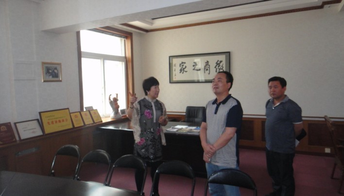 融洽的会谈之余,吴伟秘书长带领安徽商务厅相关领导,参观了历届国际徽商精英年会照片墙,并着重介绍了大连徽商商会于2010年,主办的国际徽商精英年会。最后商务厅领导欣赏了周本立会长题写的“徽商之家”。高度赞赏了周本立会长“从安徽走向大连,从大连走向世界”的精神。最后安徽省商务厅领导,也预祝大连徽商商会愈加壮大,各位会员企业取得辉煌发展。