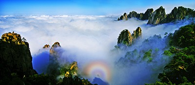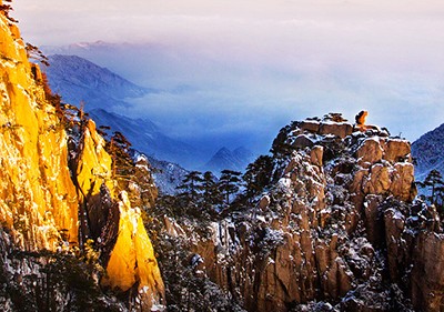 黄山,位于安徽省南部黄山市境内,原名黟山,因峰岩青黑,遥望苍黛而名。后因传轩辕黄帝曾在此炼丹,唐玄宗信奉道教,故于天宝六年改为“黄山”。明朝旅行家、地理学家徐霞客两次登临黄山,赞叹”薄海内外,无如徽之黄山。登黄山,天下无山,观止矣!“被后人引申为“五岳归来不看山,黄山归来不看岳”。1990年12月黄山风景名胜区作为一项文化与自然双重遗产被联合国教科文组织列入世界遗产名录;2004年2月成为世界地质公园。