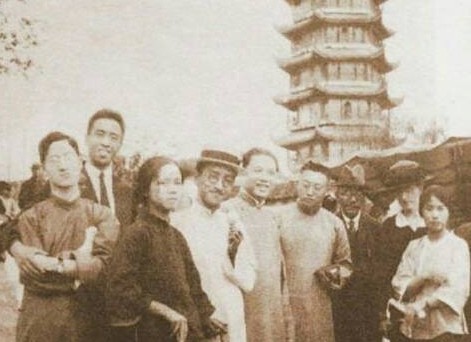 徐志摩、朱经农、曹诚英、胡适、汪精卫、陶行知、马君武等在杭州观潮合影