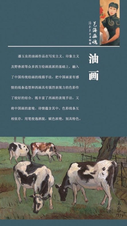 潘玉良的油画作品在写实主义、印象主义及野兽派等众多西方绘画流派的基础上,融入了中国传统绘画的线描手法,把中国画富有感情的线条造型和西画具有强烈表现力的色彩作了较好的结合,既丰富了西画的表现手法,又将中国画的意境、诗情蕴含其中。色彩线条互相依存,用笔俊逸洒脱,赋色浓艳,别具特色。